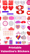 Printable Hearts Valentine Stickers, Labels, Gift Tags - PDF File