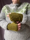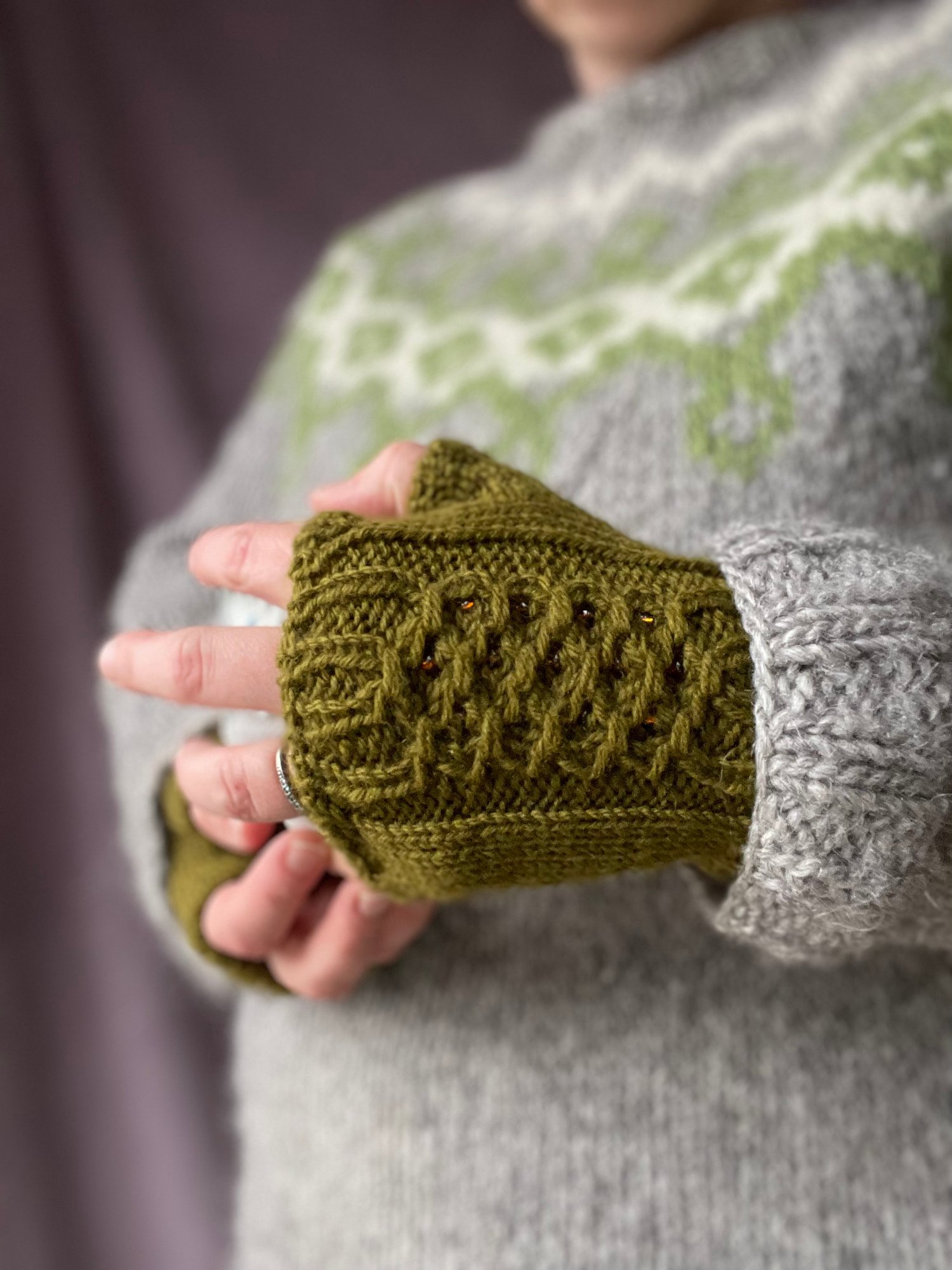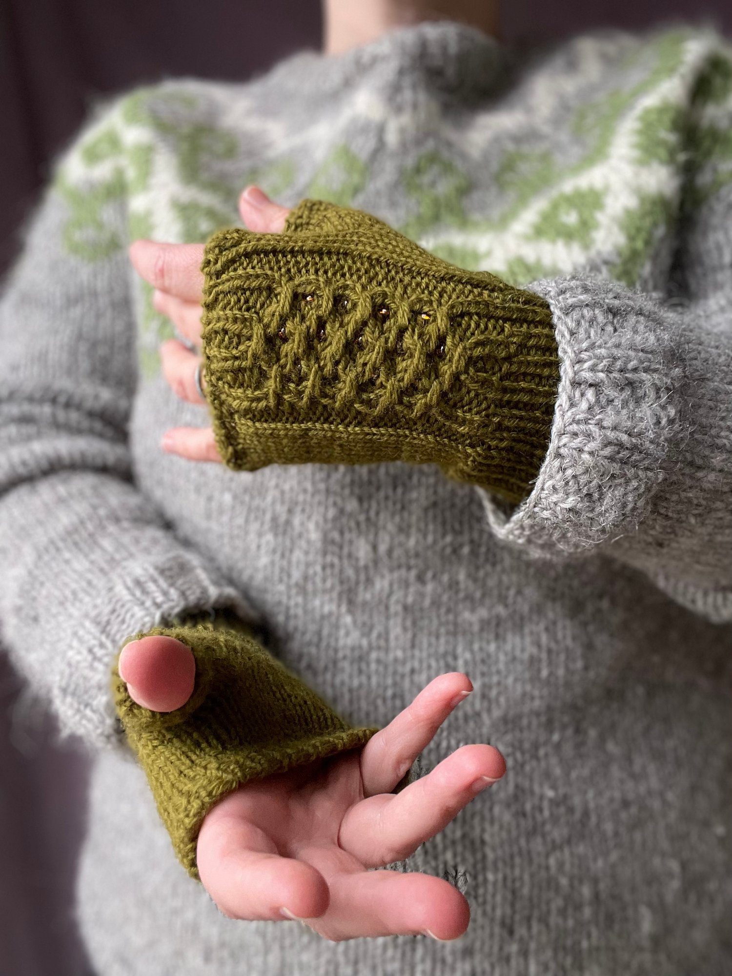 The mitts are a great beginner project for diving into smocked stitches and/or knitting with beads. The construction is easy and it takes just enough time to get some practice in and get comfortable with these techniques.