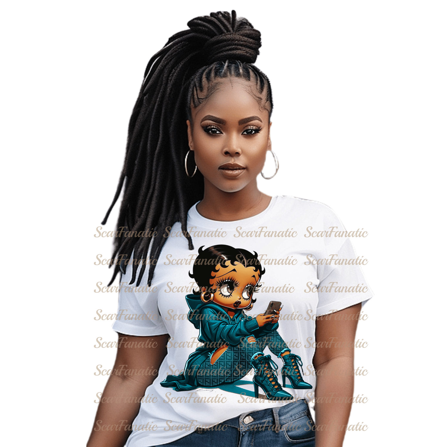 Teal Color Black Betty Boop with FND pants T-Shirt