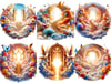 Halftone Memorial Background, White Knockout Rest in Peace PNG Designs Transparent DTF Printing Heavenly Design, Round Heavens gate Backdrop