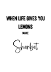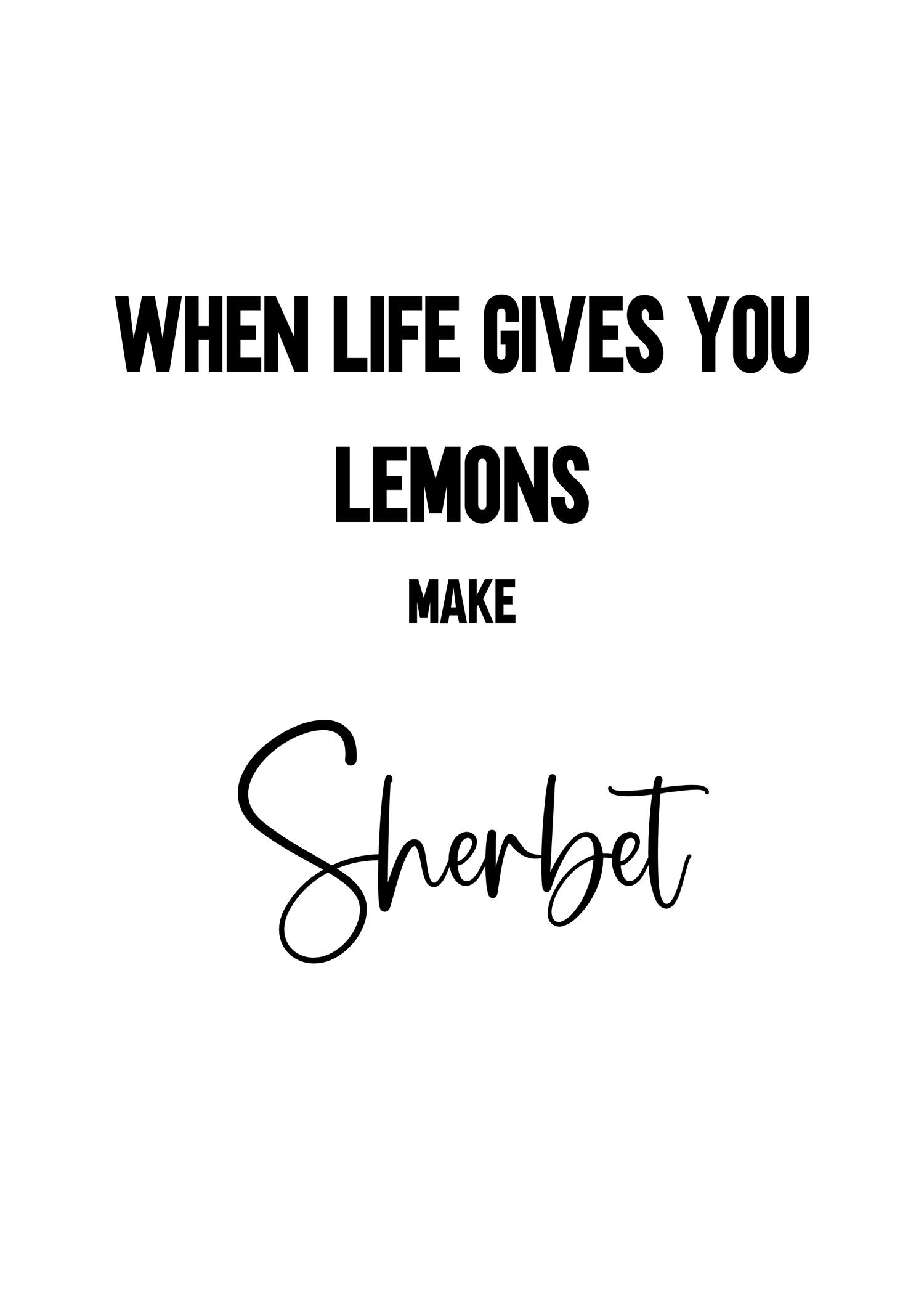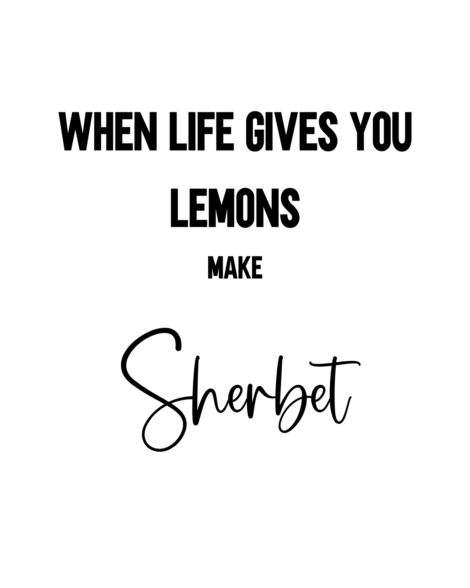 Inspirational quote about life in a beautiful font: "When life gives you lemons make Sherbet"