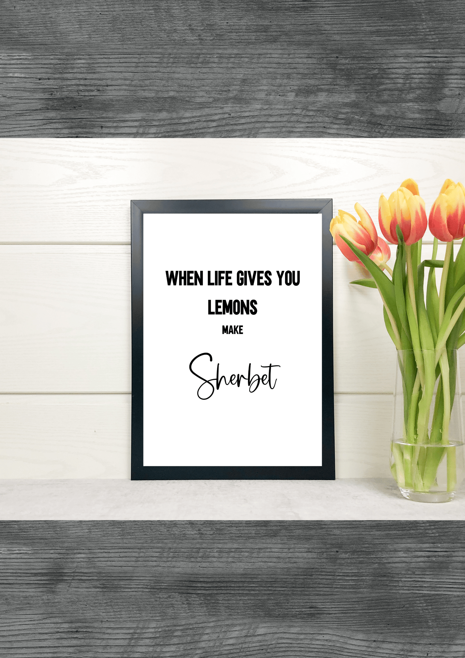 Funny Digital Print with text “When Life Gives You Lemons Make Sherbet”-Lovely Inspirational Motivational Quotes about Life-Pretty Home Decoration Art Wall or Office Wall Art-Change Quotes-Happiness Quote-Uplifting Quotes