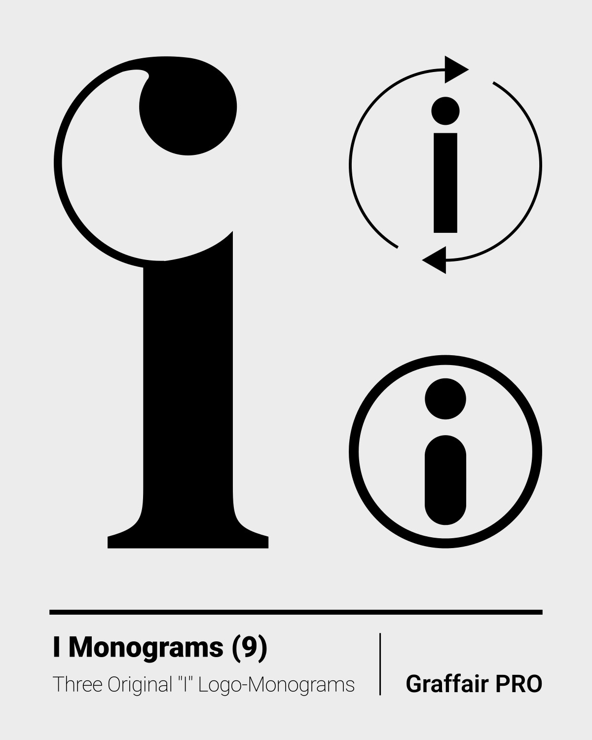 I Monograms (9): The 9th set of three original "I" logo monograms, included in the "1050 SVG Monograms" super package, which also features an Index catalog.