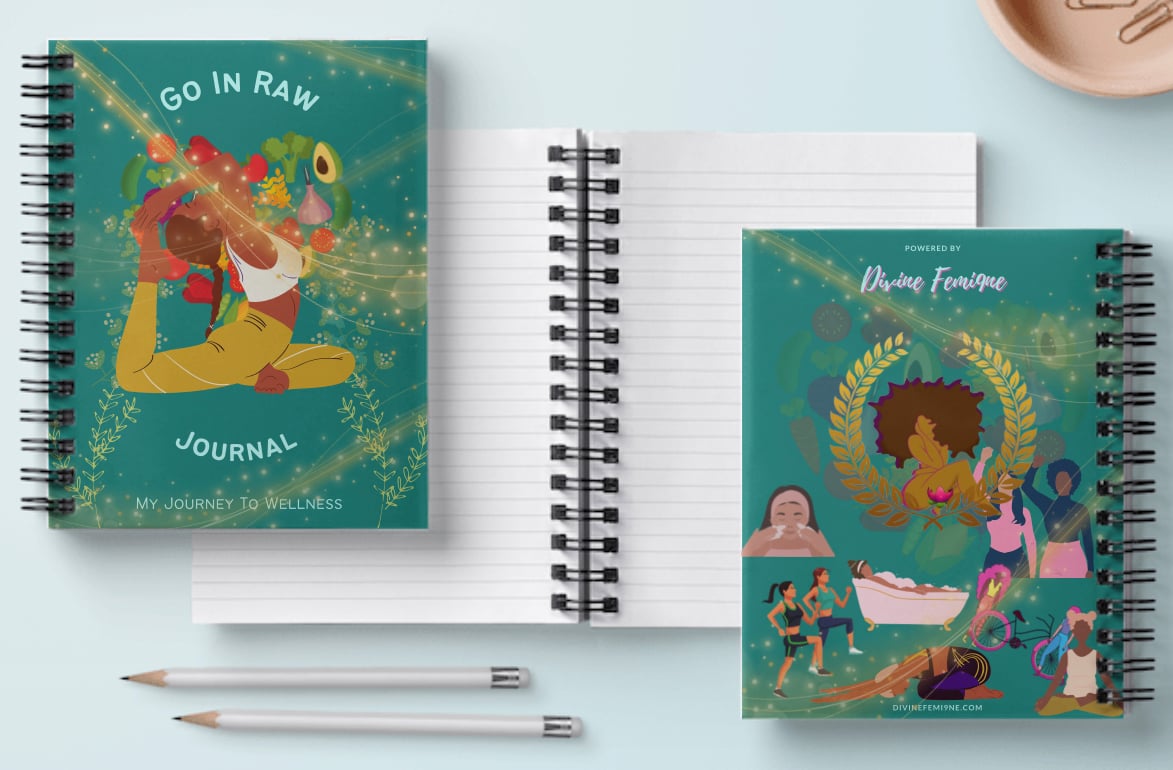 Go In Raw is the Divine Femi9ne powered 30 Day Health Challenge beginning 6/1/22, but you can begin anytime! If you'd like to participate the RSVP is free! You'll be cordially invited to our private support group and with the purchase of this journal you will recieve free goodies as well! Excited for your journey! This is the First Edition.