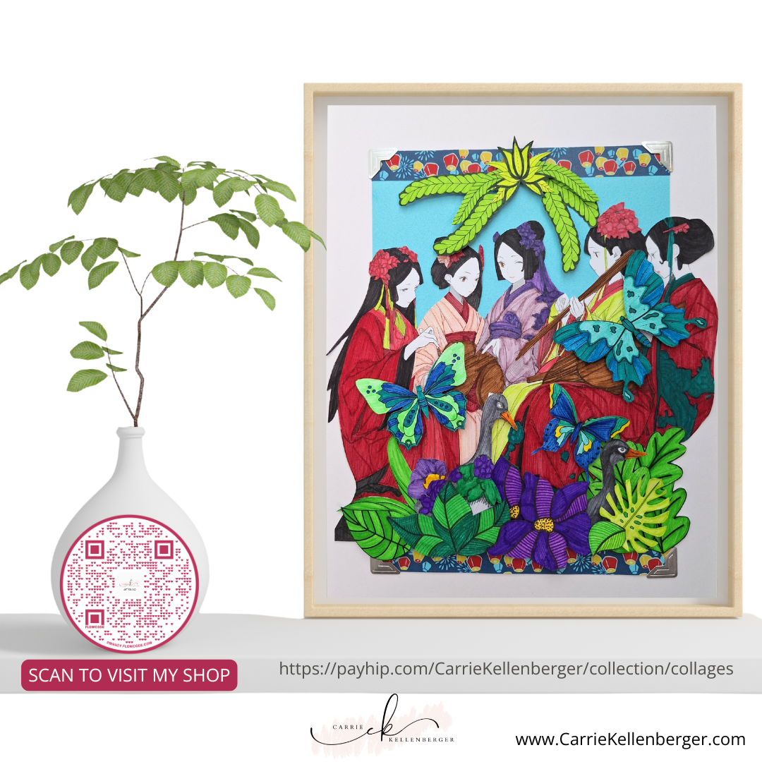 My paper cutting technique adds an extra 3D dimension of beauty and intricacy to each design, making my collages a delightful keepsake. They’re meant to brighten any space: an office cubby, a senior’s bedside, a child’s room, a sunny kitchen, or anywhere your heart desires.