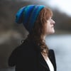 This STRIPED WOOL HAT is a cozy beanie hat. Beautiful gradient shades of blue, warm and soft wool yarn make this hat a beautiful and practical colder weather accesssory.