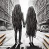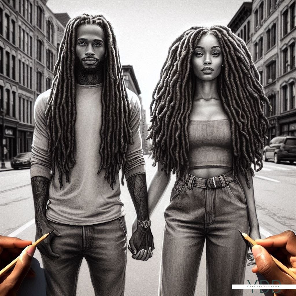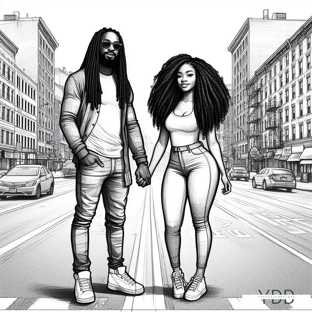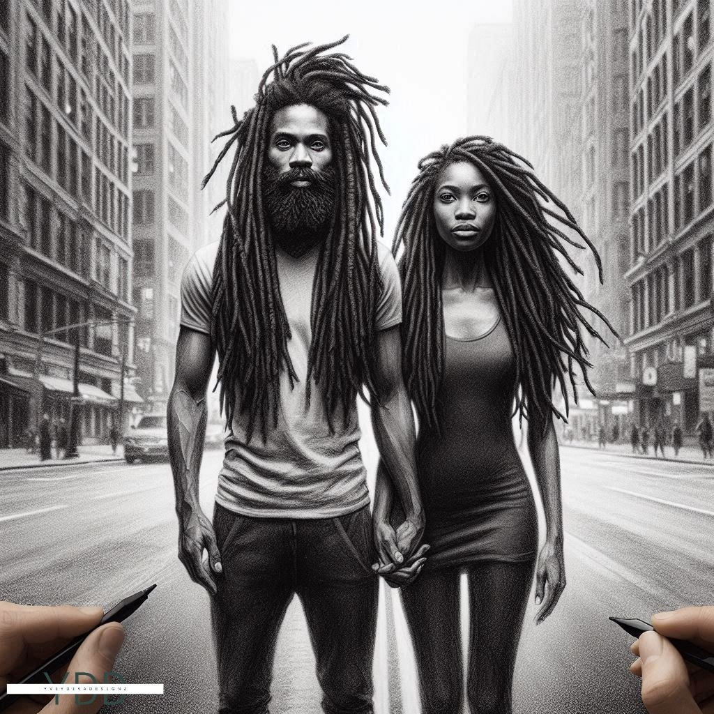 A poignant charcoal sketch of a young African American couple standing together on a deserted street, their figures blending with the desolate surroundings. The shadows of a gloomy day linger in the air, but their quiet connection brings a sense of hope amidst the isolation.