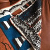 This graphic lap blanket is worked in four bold colours to create a striking design that will be at home in any stylish living space. The central panel is knitted first, then the side borders are knitted on. Finally, a pop of colour is added with a knitted-on edging.