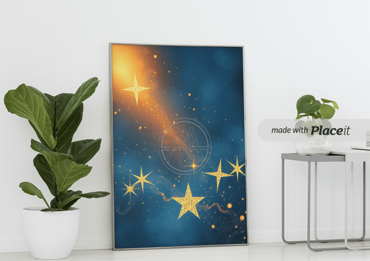 “Celestial Drift” is a luxurious abstract cosmic artwork inspired by drifting stars in golden light. A perfect blend of elegance, mysticism, and serenity, this printable wall art brings celestial harmony to your home. Ideal for bedrooms, meditation corners, or creative spaces.