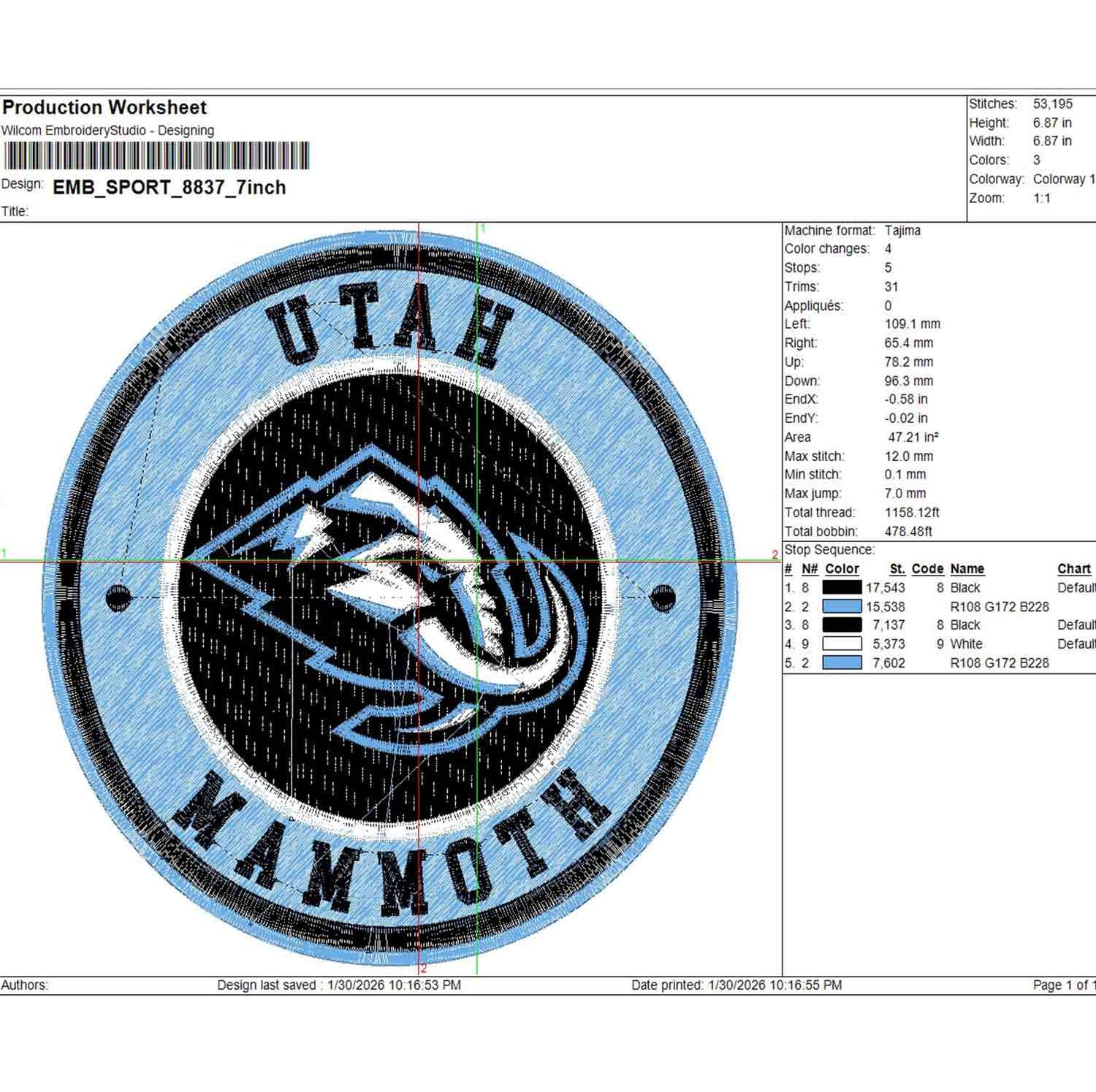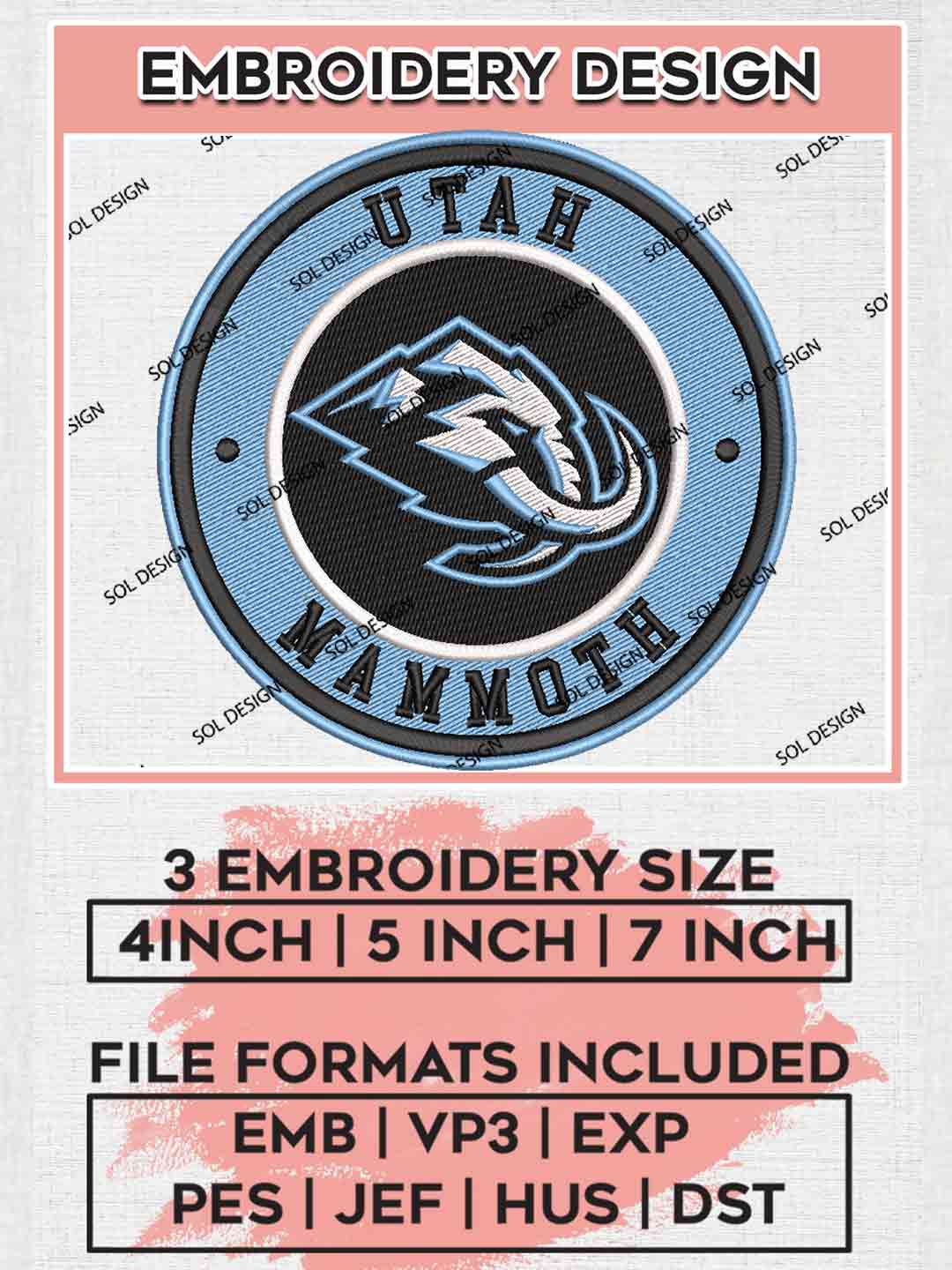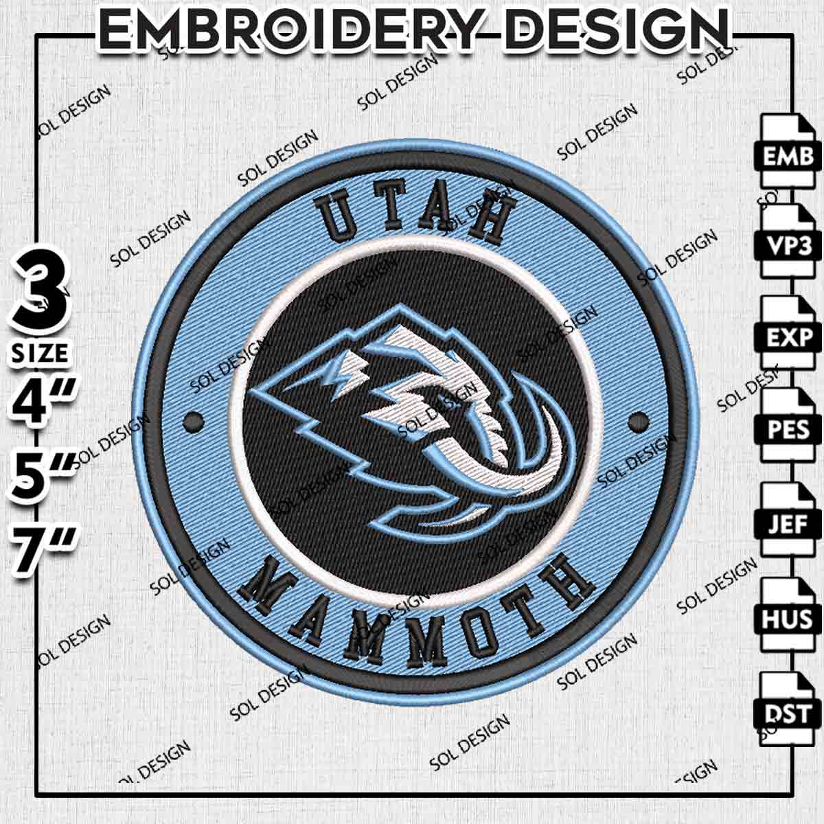 Utah Mammoth Round Logo Embroidery Designs, Utah Mammoth Hockey Team Embroidery Files, NHL Utah Mammoth Team Logo Embroidery, NHL Mammoth Machine Embroidery Design, National Hockey League, Digital Download