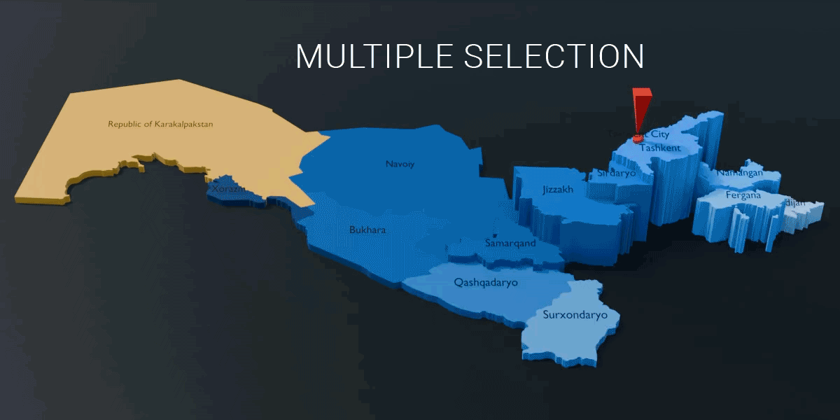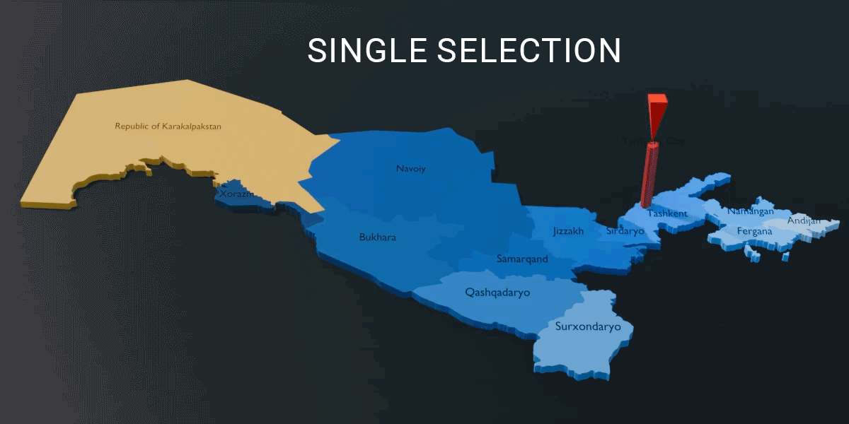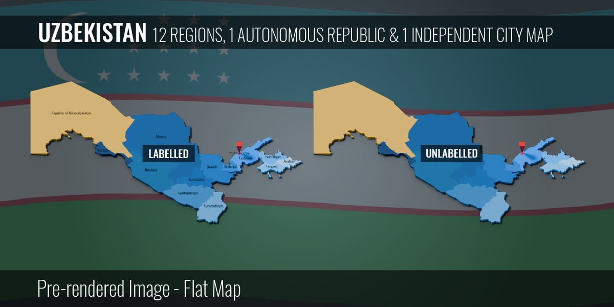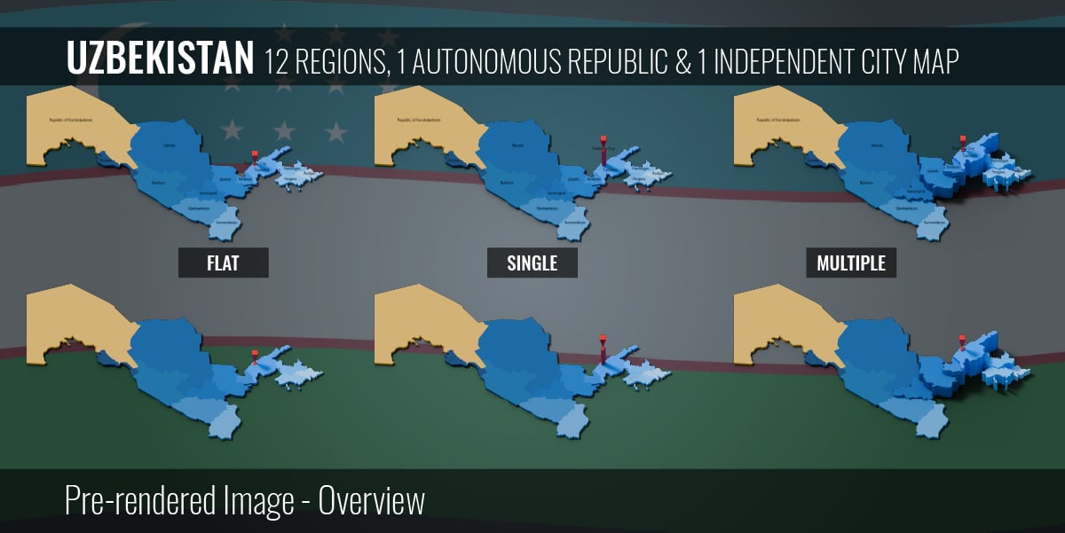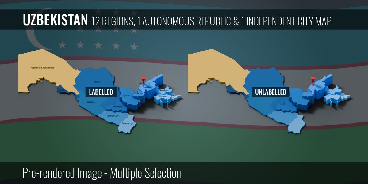 Uzbekistan - 12 Regions 1 City & 1 Autonomous Republic Map (3D + Pre-rendered Images)