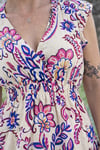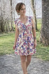 Son imprimé floral aux touches de rose et de bleu sur fond clair apporte de la fraîcheur et un côté bohème chic très facile à accessoiriser.