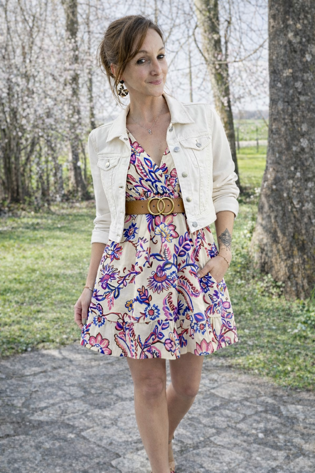 - au printemps avec une veste en jean