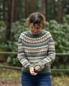 Happy Sweater is a happy chance to use lonely scrap yarn skeins in your stash. The sample uses four colors but play with the idea of using more colors, too. The stranded colorwork pattern is simple, you only use two colors at a time. And the pattern repeat is only four stitches, so it is quite easy to see and memorize from the work. Happy knitting!