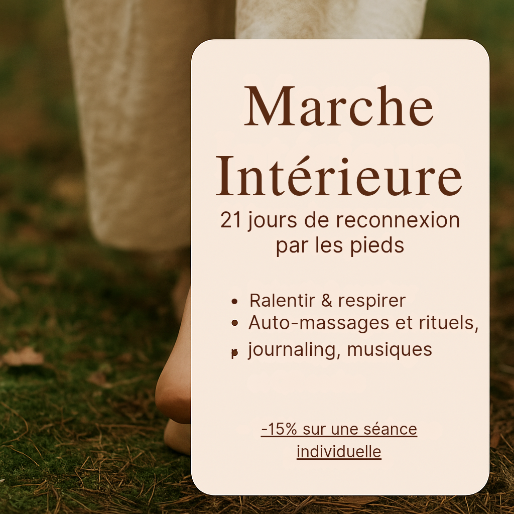 Basé sur des principes de réflexologie plantaire, de pleine conscience et de rituels doux, ce programme t'aide à retrouver de l'énergie, du calme et du lien avec toi-même.