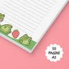 Set 3 carnete A5 modele japoneze Kawaii, broscute, catei si Sushi, 50 pag hartie premium 90g/m², suport din carton.