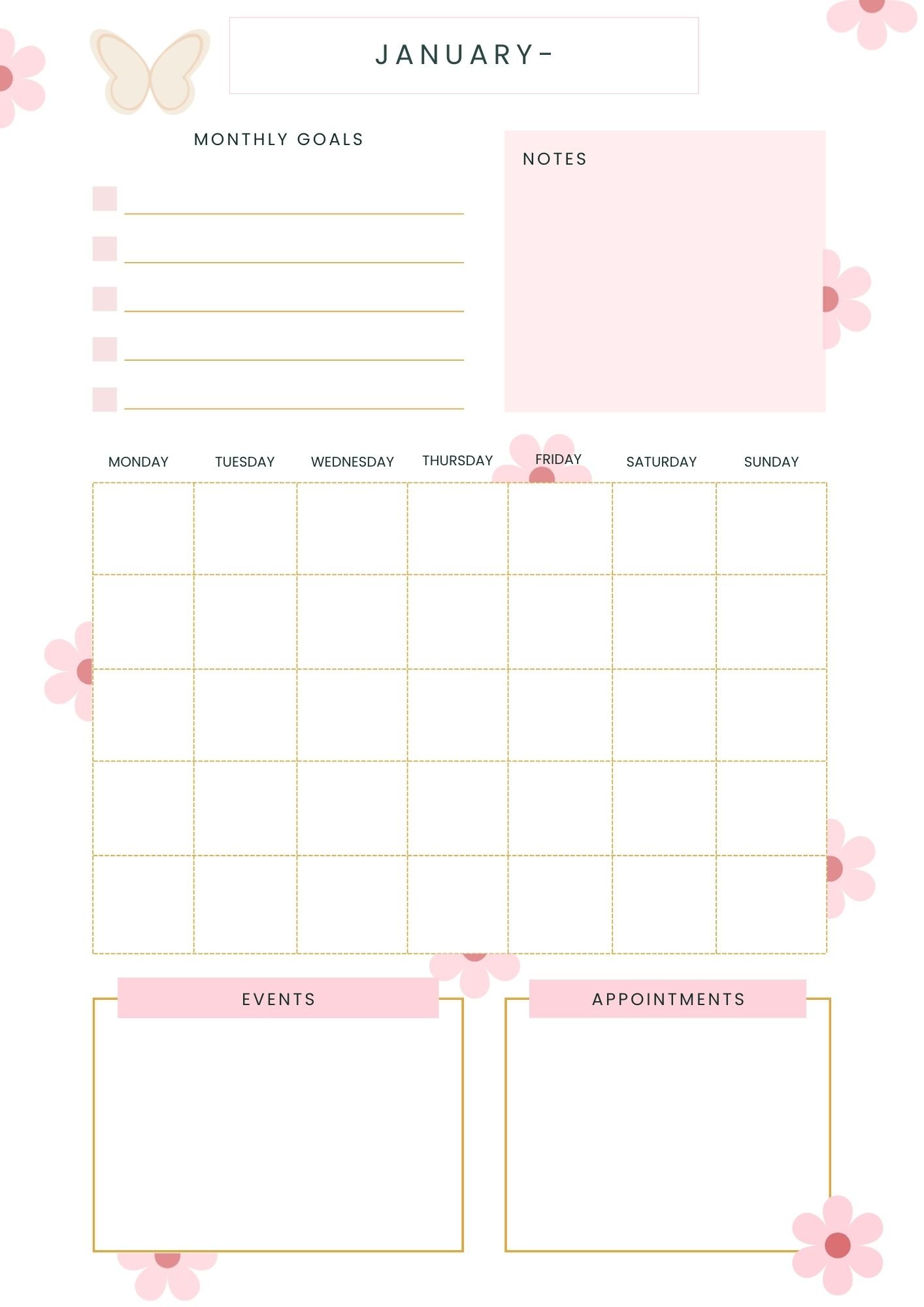- 12 Monthly Undated Calendars โ start any month you like (MondayโSunday)