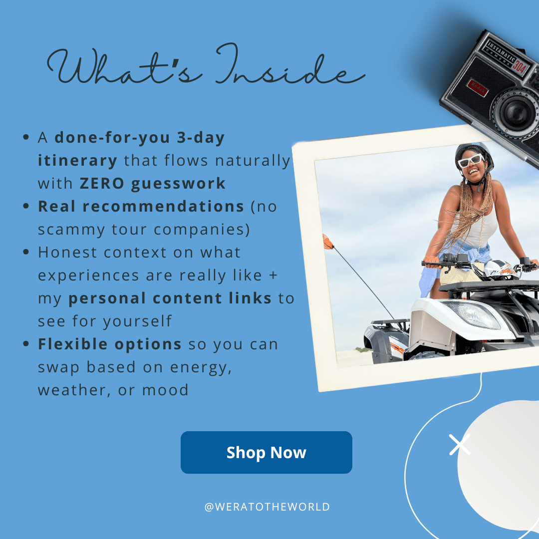 - A done-for-you 3-day itinerary that flows naturally with ZERO guesswork