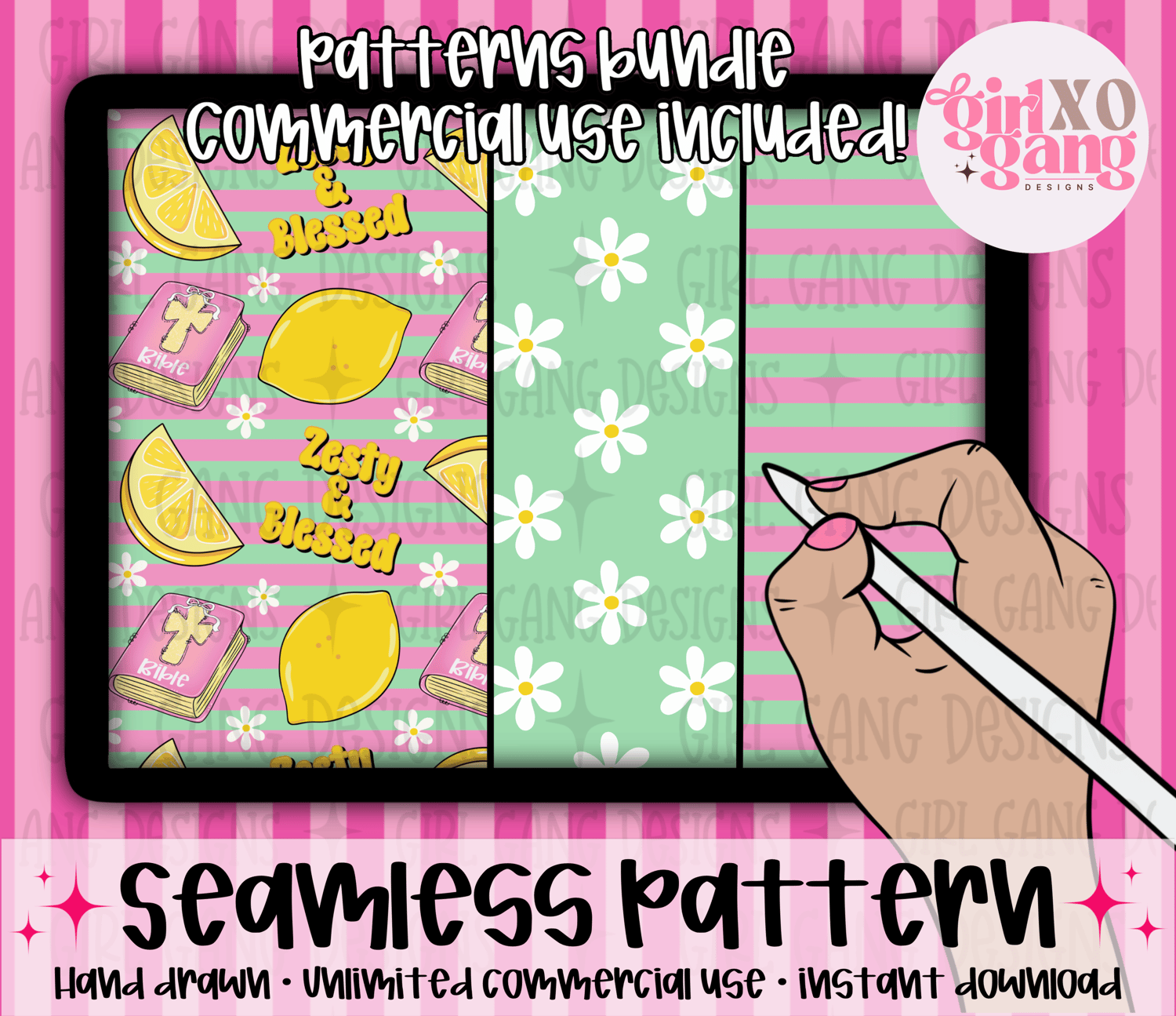Zest and blessed lemon faith seamless pattern bundle 3 png patchwork checker