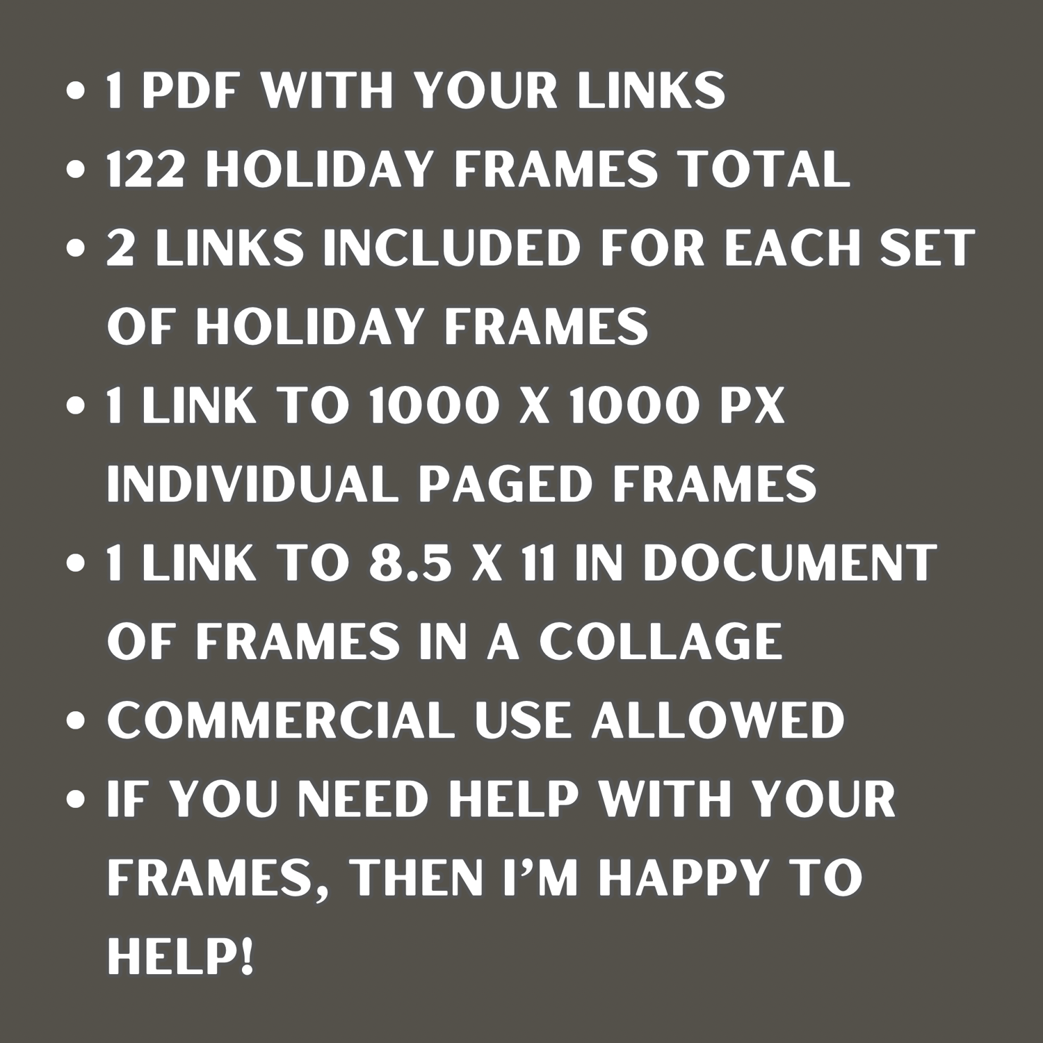 - 2 links included for each set of holiday frames
