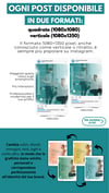- Ogni post disponibile in 2 formati: quadrato (1080x1080) e verticale (1080x1350)