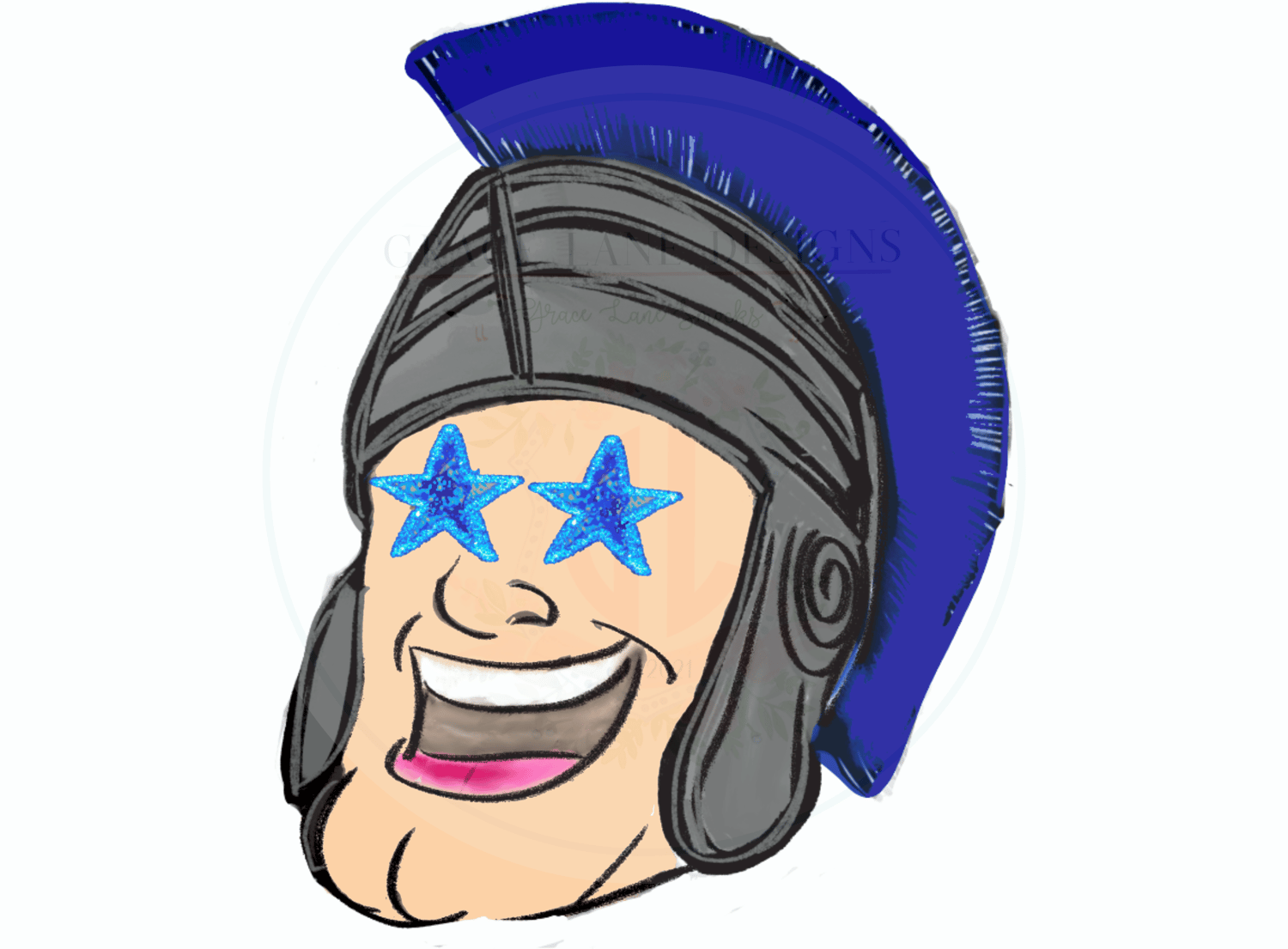 Royal Blue SPARTAN Trojan Glitter Star Eyes png Hand Drawn Procreate Digital Download Tailgate Football Game Cheerleader