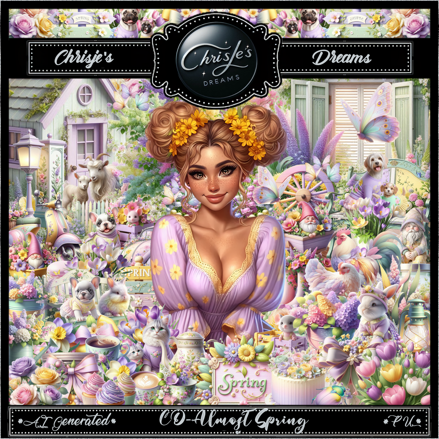 Almost Spring is a🌷🌸 spring🌸🌷 themed kit which contains 182 elements, 8 Frames, 20 papers and 2 beautiful AI generated png tubes by Chrisje's Dreams.