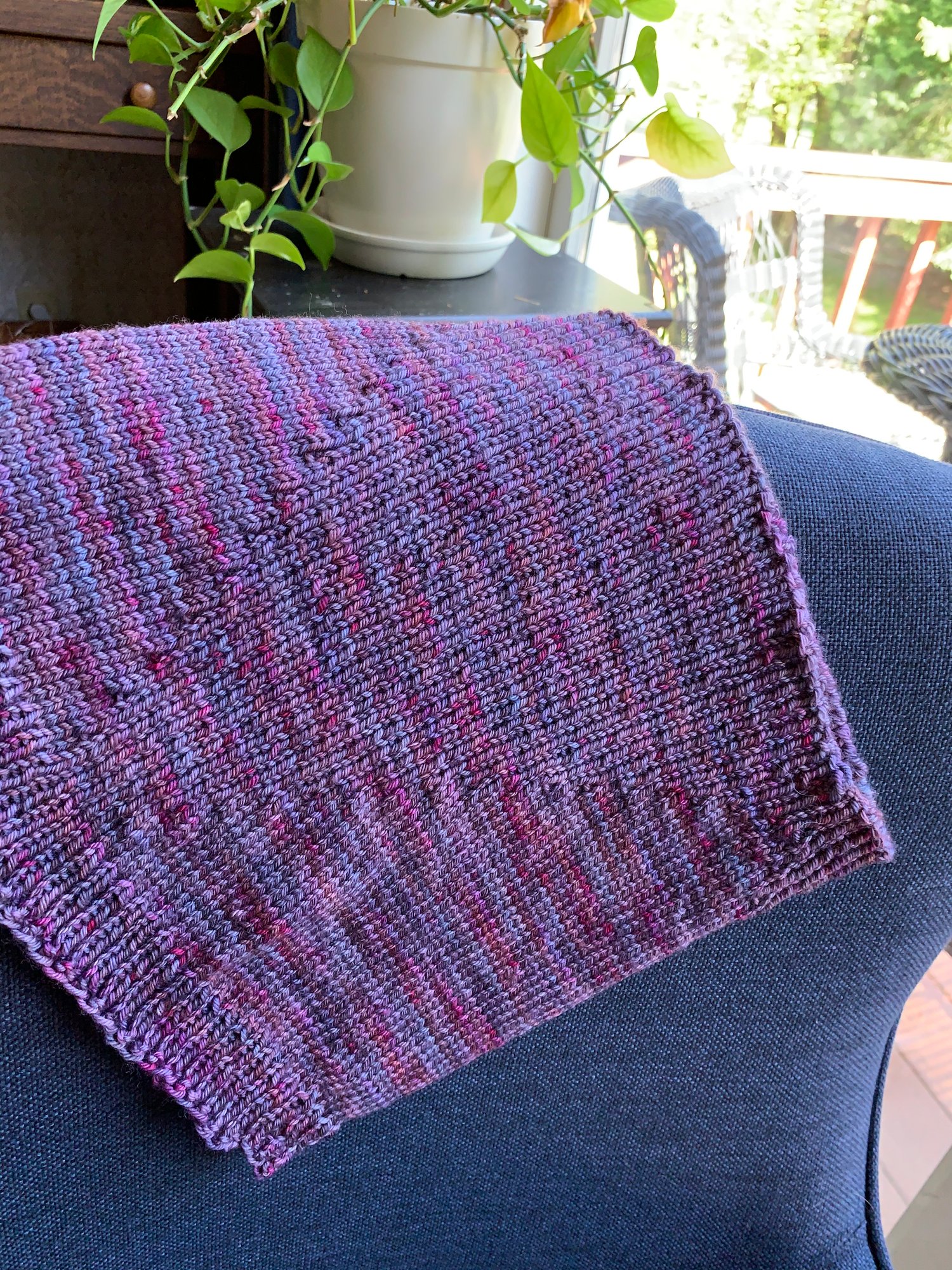 Trapezoid is a small cowl, meant for those breezy days when you just want to keep the chill off of your neck. It gets is trapezoid shape from change in number of ribbed stitches from top to bottom. The ribbed sections give it a subtle change in texture. I knit it in Classic Elite Yarns Soft Linen, but you may use any DK weight yarn. It will work in a solid or a self striping yarn. I like the linen blend because it softens as you wear it and becomes a deliciously soft hug around your neck.