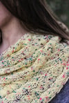 The Corrigan Cowlette is a fun cabled cowlette worked up in what I keep calling birthday cake colors! The Little Miss Sunshine colorway reminds me of buttercream icing with sprinkles. Part of The Fiber Seed Swiftie collection, this cowlette is worked diagonally with an applied cable bind-off.