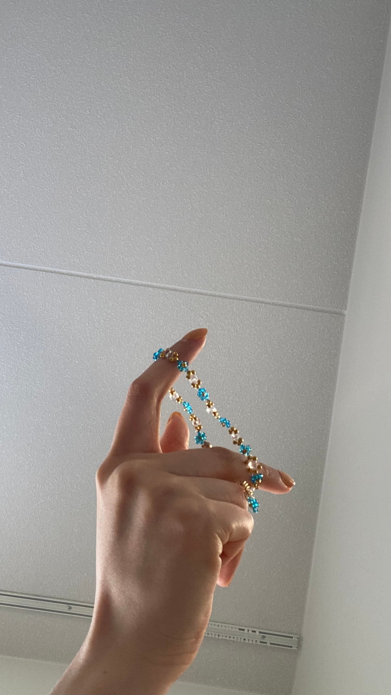 An elegant bracelet in blue tones, designed to catch the light with subtle sparkle. Calm yet refined, it adds a graceful accent to your wrist and pairs beautifully with both casual and dressed-up looks.