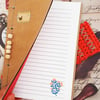 Notes: 60 ruled pages; hand-bound; hand-sewn (you can actually see that same hand in the last photo...)