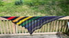 Any yarn will work with this as long as your gauge (yarn/needle combination) creates a fabric that will lay nicely across your shoulders. This pattern will work well with most gradients, solids, or semisolid colors. The Blossom and Ocean samples were knit with Cauldron’s Path Yarns Sunrises (475yds per 100gms) in multiple colors that were in my stash. The Rainbow sample was knit with a variety of fingering weight yarns.