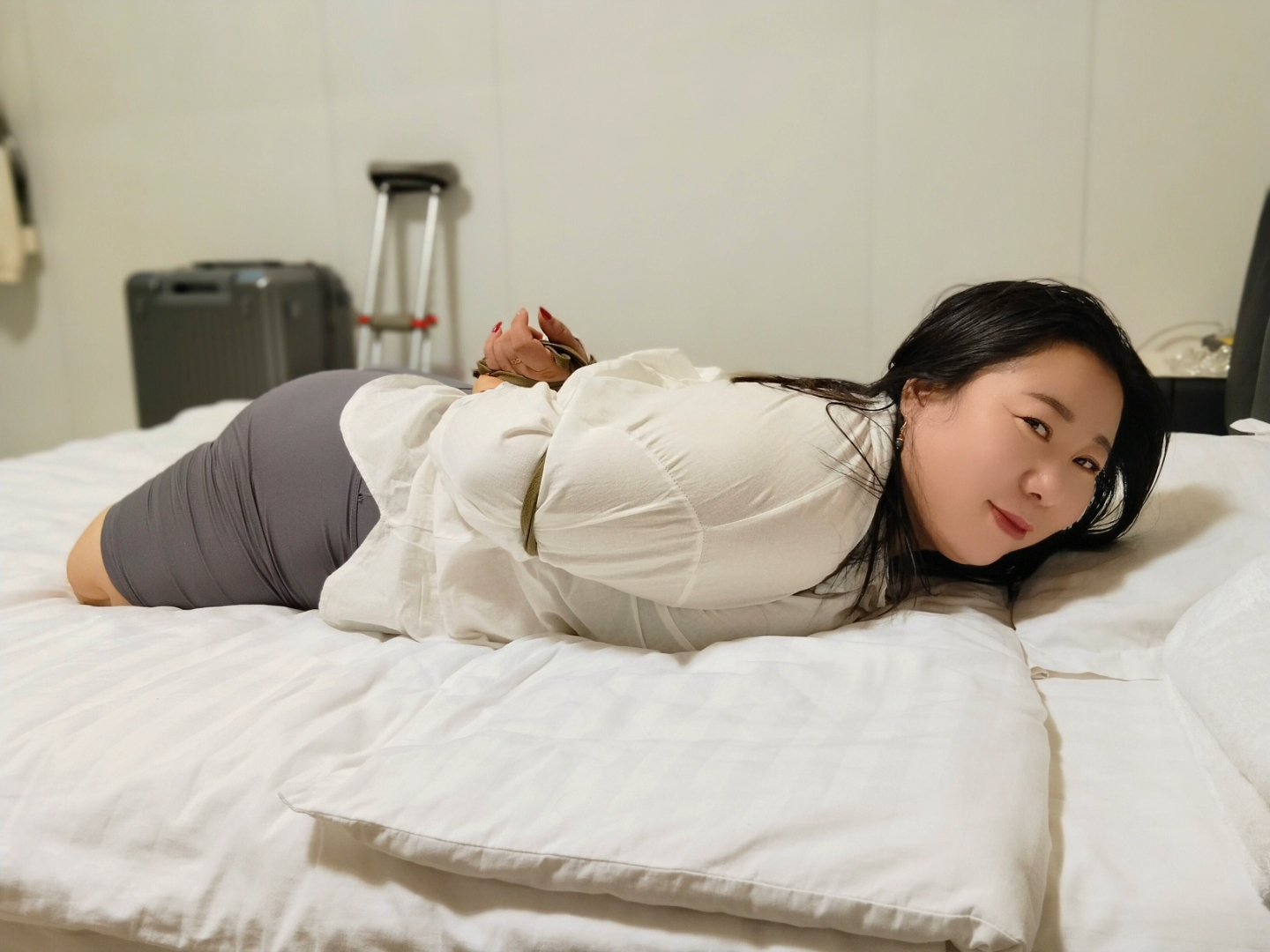 Beryl's interaction with the photographer resulted in a captivating performance. In the video, she made a daring attempt, donning a striped hospital gown and having her amputated limbs and hands bound with bandages by the photographer. Watch the full video for more exciting content.
