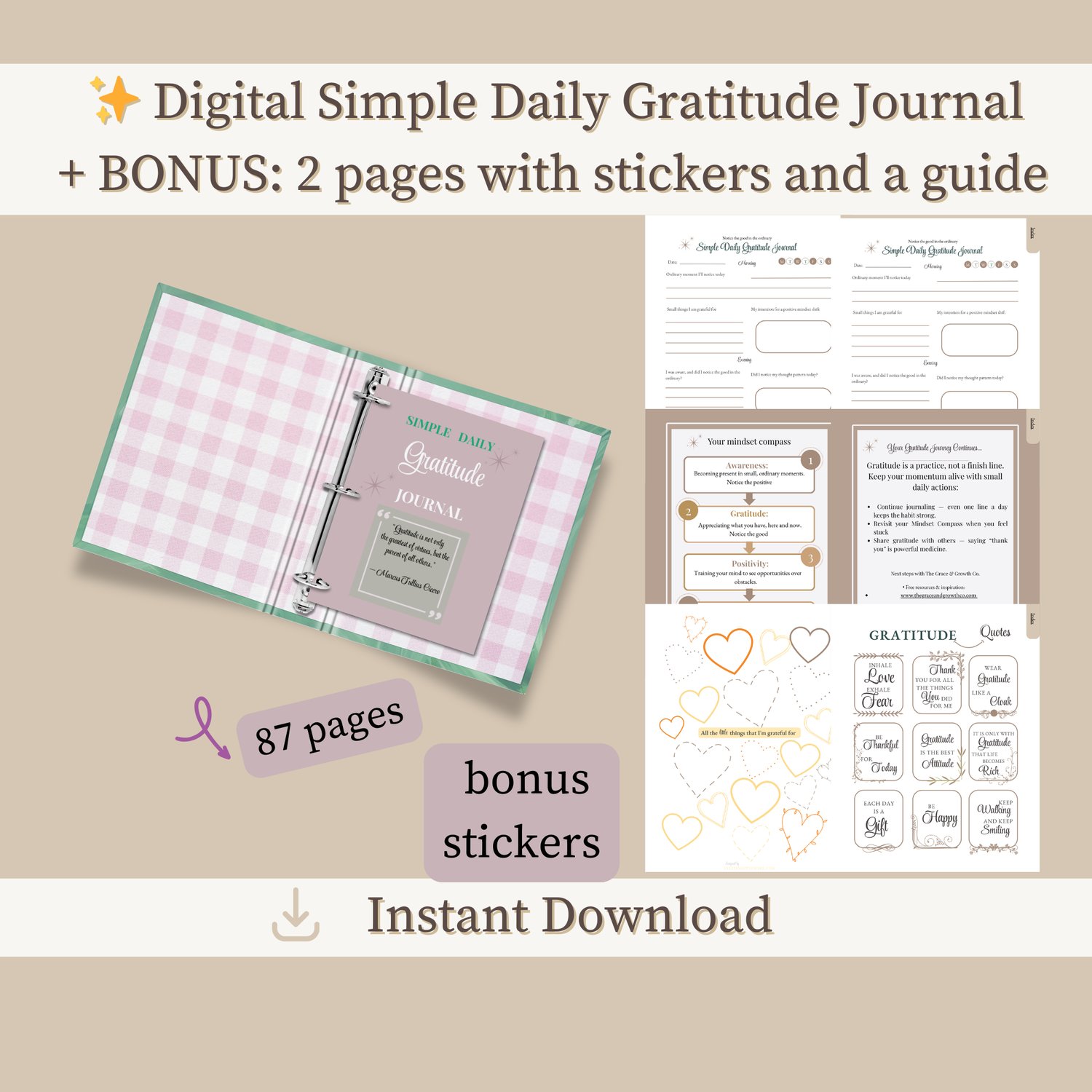 - Digital gratitude stickers + quote stickers (PNG)
