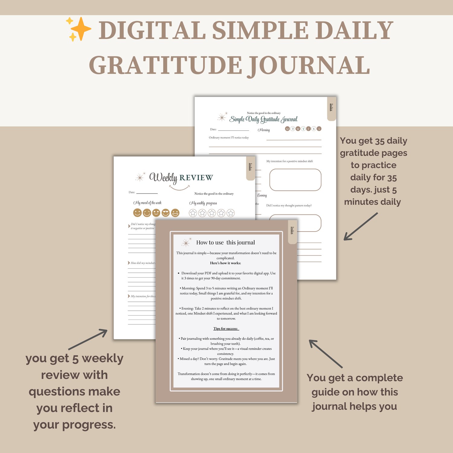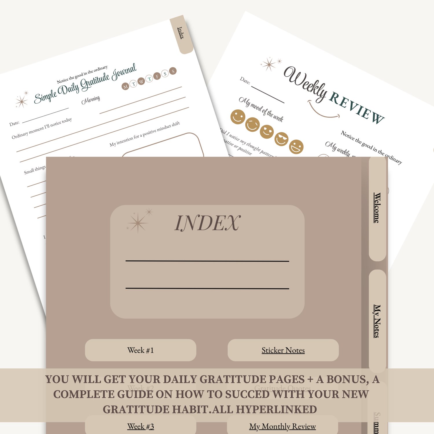 Simple Daily Gratitude Journal (Hyperlinked Digital)