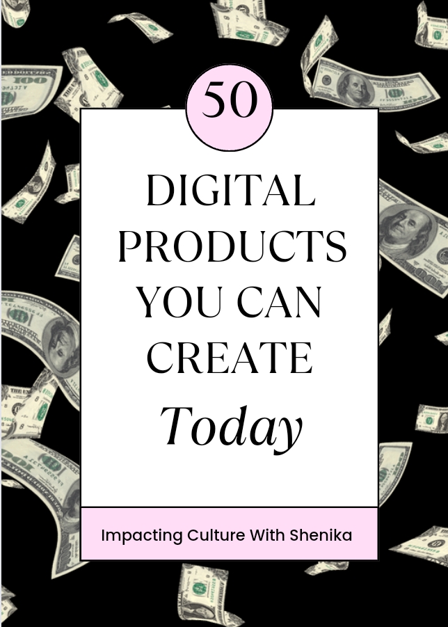 Here is access to 50 digital products that you can create today and start earning extra income. Impacting Culture in every aspect is what we do, by providing the best solutions to help grow to financial freedom.