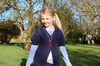 The garment has several inches of positive ease to allow for growth (approx. 2 inches/5cm for the baby sizes and 2.5 inches - 4 inches/7-10 cm for the child sizes). My navy blue sample shows the size 6 garment fitted on a model who is a standard size 6 as a standard fit. My multicoloured sample shows a size 6 model wearing a size 8 cardigan to give you an idea of how the garment will look if you choose to allow even more room for growth, whilst the teal coloured sample by test knitter clintrer shows a model who wanted a more fitted look and is a size 9 in a size 8 cardigan.