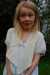 Follow the pattern exactly and the garment magically appears as shown. Or use some of the suggested variations to free your knitting even further - this pattern is a great starting point for those who want to start to make their own decisions and customizations. During the test knit testers used a variety of different increases to vary the look, added buttonholes, tried out different borders, stopped short on the length to create bolero versions. My own white garter stitch bolero version shows how you can use the basic recipe to take the pattern in different directions of your own. And the way that it grows makes striped versions very interesting and attractive (see the beautiful adult version by tester orkenvandrer below).
