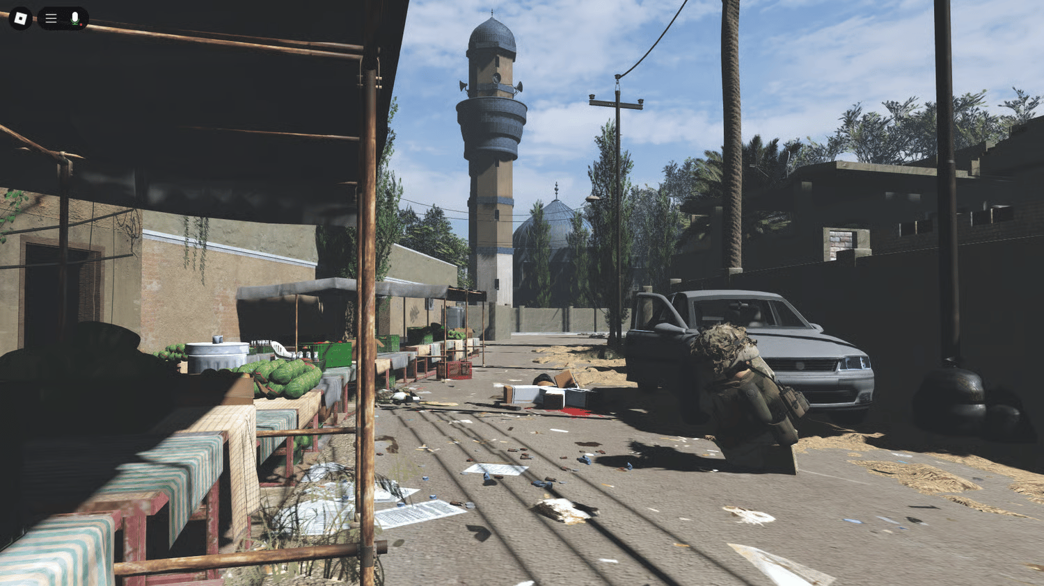 - Large-scale Roblox environment inspired by the urban layout of Fallujah