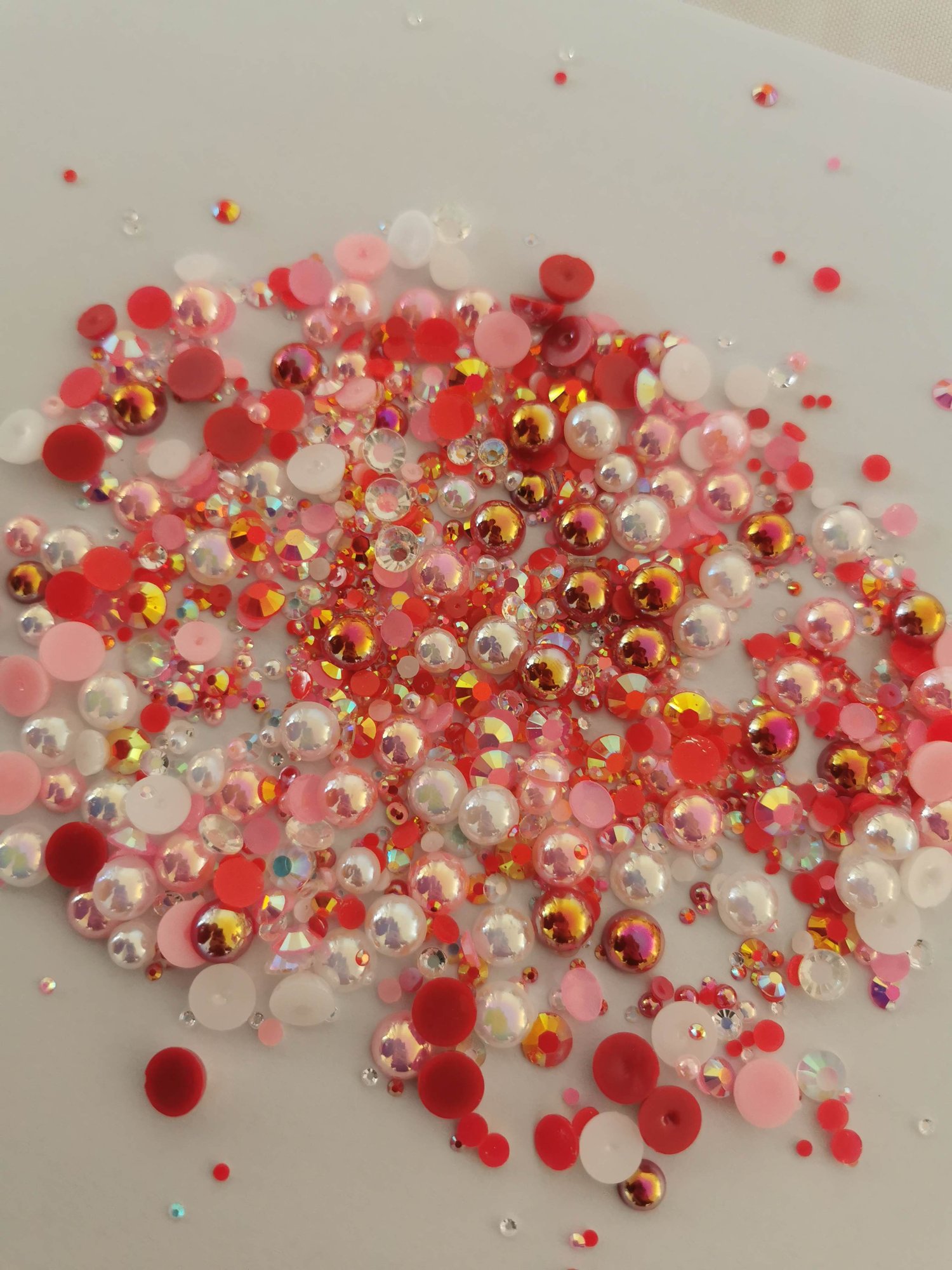 A beautiful mix of pink, white and red pearls and jelly gems. These are perfect for your DIY projects.