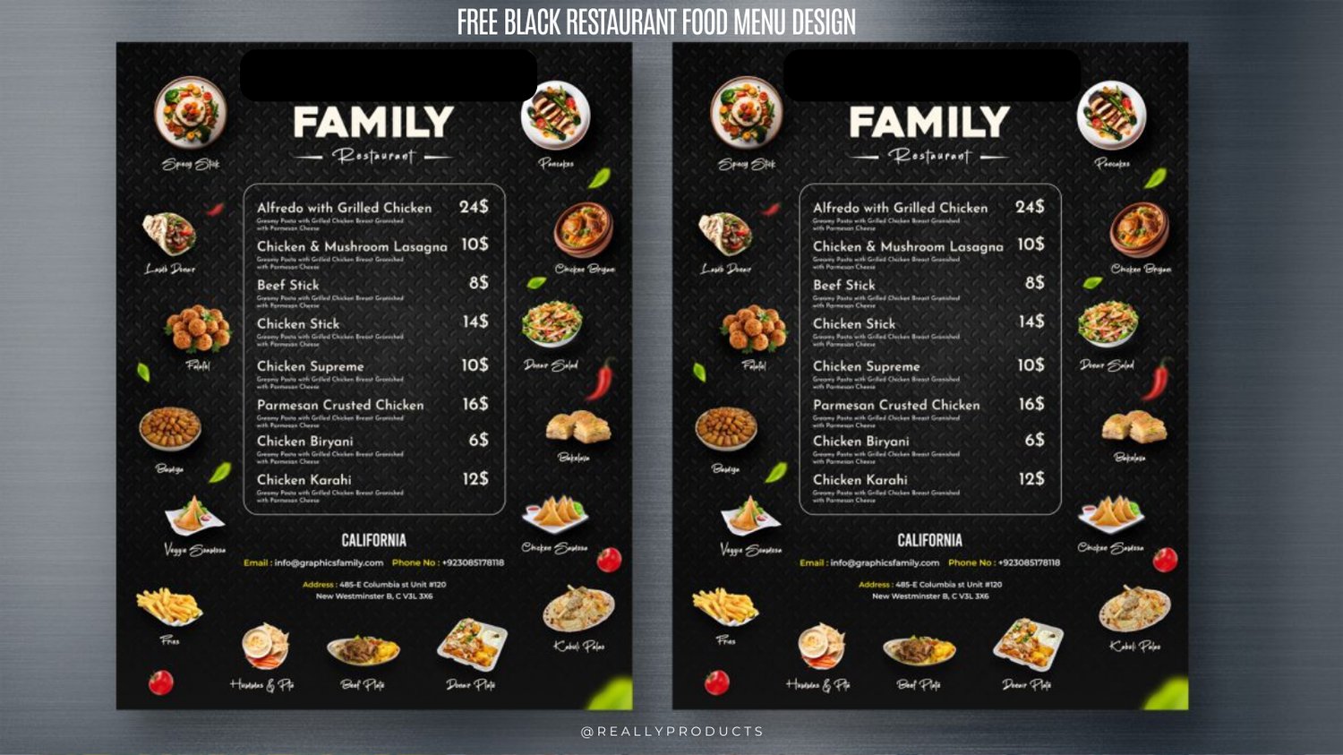 Black Restaurant Food Menu Design VIP