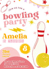 Pink Bowling Birthday Invitation with Tag, Retro Bowling Invitation, Neon Glow Party, Girl Bowling Invite Groovy Strike Up Some Fun Editable