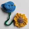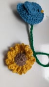 Using US terminology throughout the Bluebird is created using a mixture of single, double and half double stitches whilst the Sunflower is a simple three rounds.