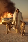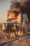 Desert Fashion Drama – Woman with Cheetahs & Burning Rolls-Royce