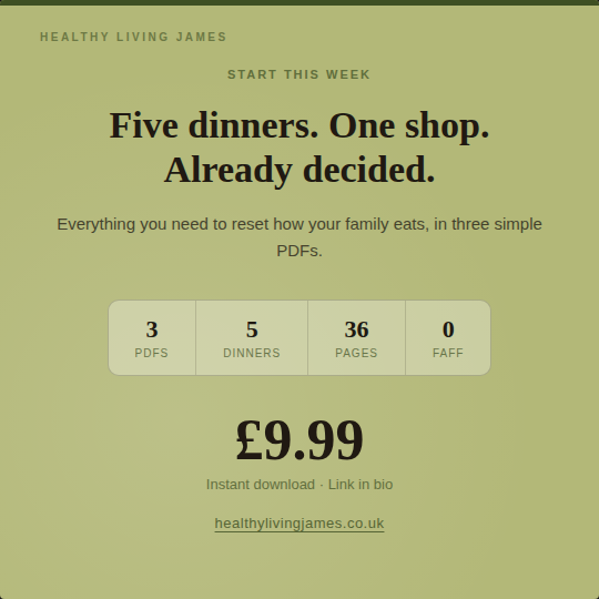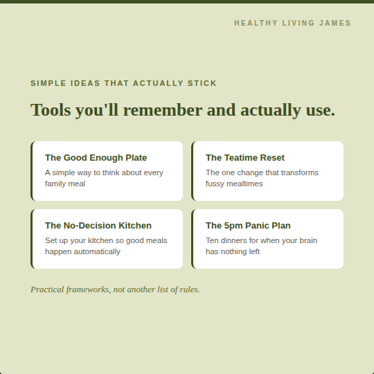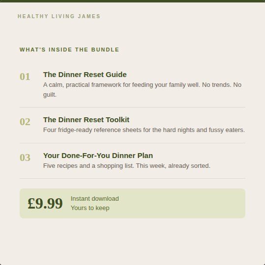 A calm, practical guide to help you cut through the food noise and feel more confident about feeding your family well. I walk you through what actually matters at mealtimes, how to make healthy feel more realistic, and how to take the pressure off on the hard nights.