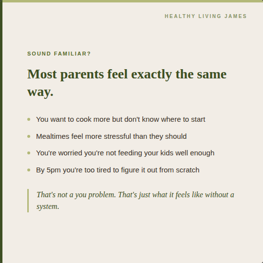You want to cook more. You want your kids eating better. You just don’t always know where to start, and by the time 5pm arrives, you’re too tired to figure it out.