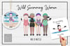 Perfect for creating personalised gifts, cards, prints, mugs, cushions, and more for wild swimmers, swim sisters, and open-water lovers. This versatile digital illustration pack lets you build your own swimmers by choosing skin tone, pose, outfit, and head style.