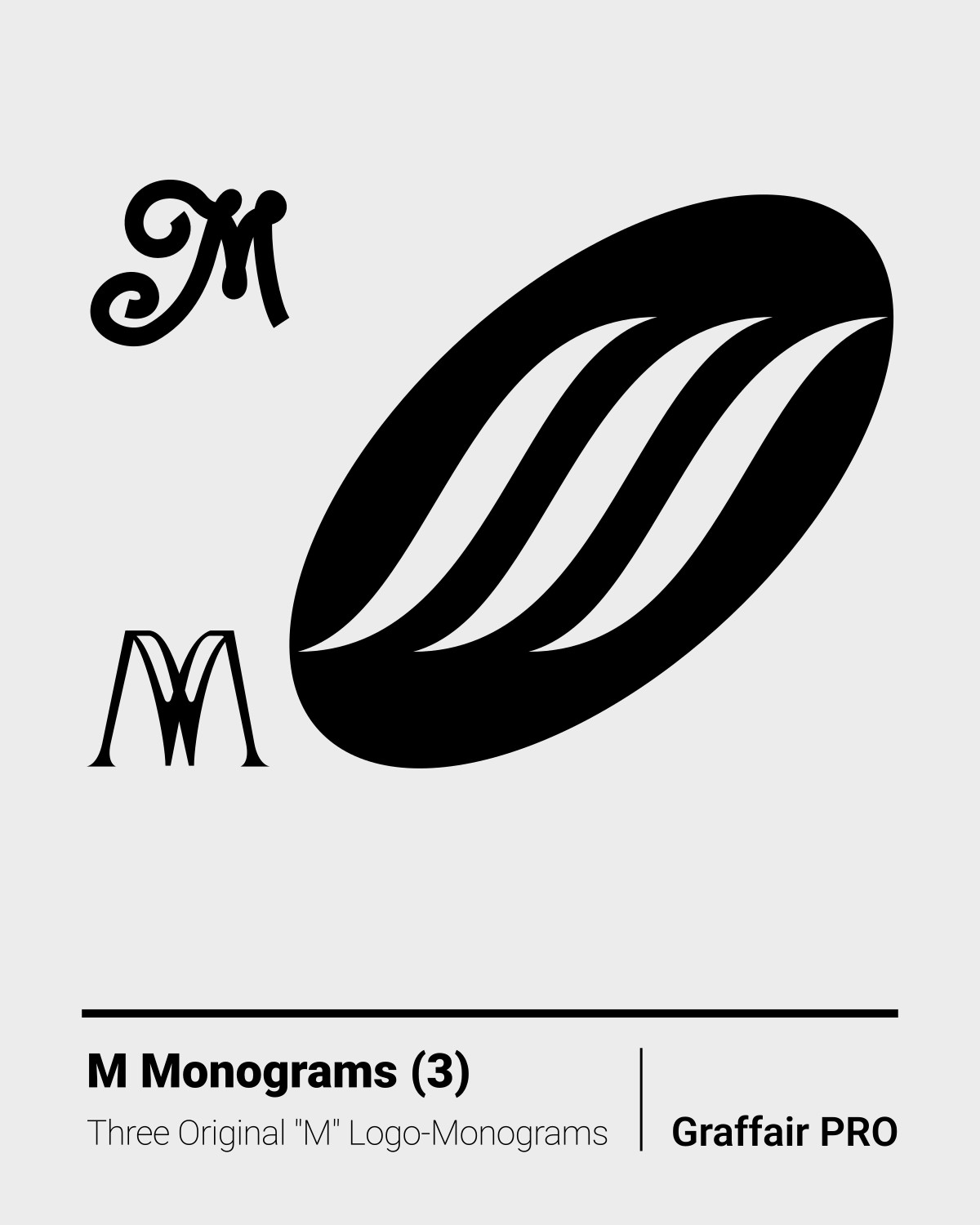 M Monograms (3): The 3rd set of three original "M" logo monograms, included in the "1050 SVG Monograms" super bundle, which also features an Index catalog.