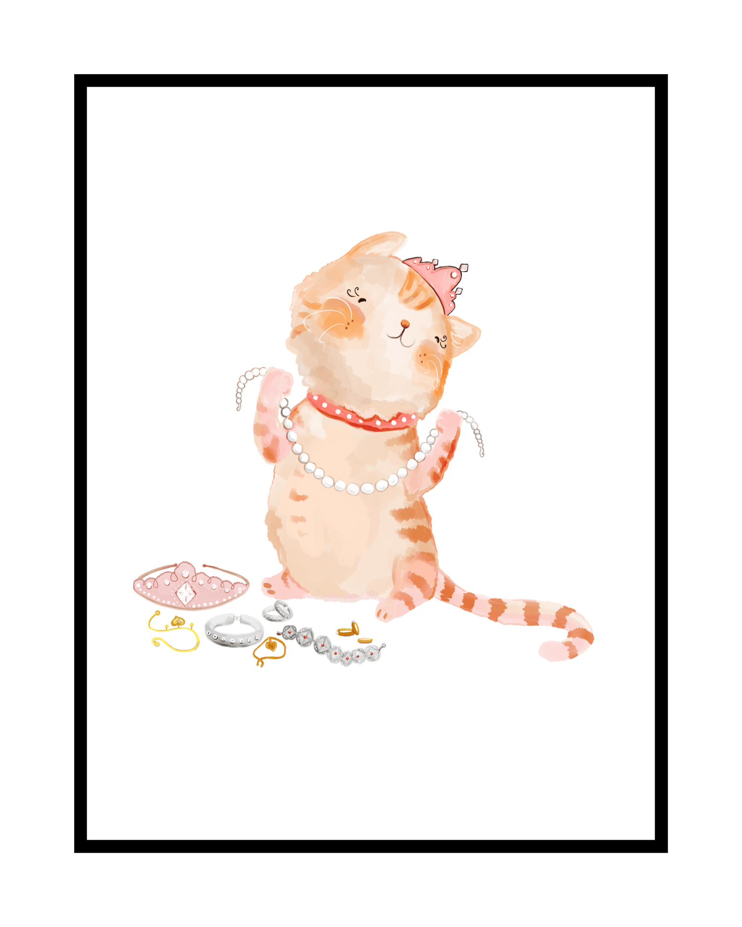 Cute Cartoon Cat Dressing Up and with Nose in the Air-Perfect for Nursery-Digital Download – Nursery Art-Nursery Animal Art-Cat Nursery Decoration-Girl Nursery Ideas