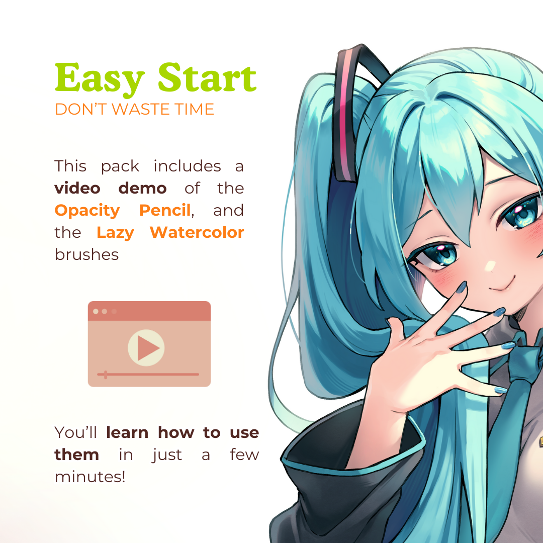 - Video demo of the Opacity Pencil and the Lazy Watercolor brushes. Available in English and Spanish